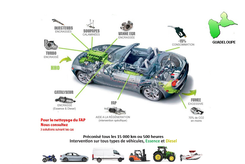 Pour répondre à ce problème, nous proposons depuis 2018 en Guadeloupe, un procédé écologique qui consiste à injecter du Gaz OxyHydrogène par l'admission d'air.